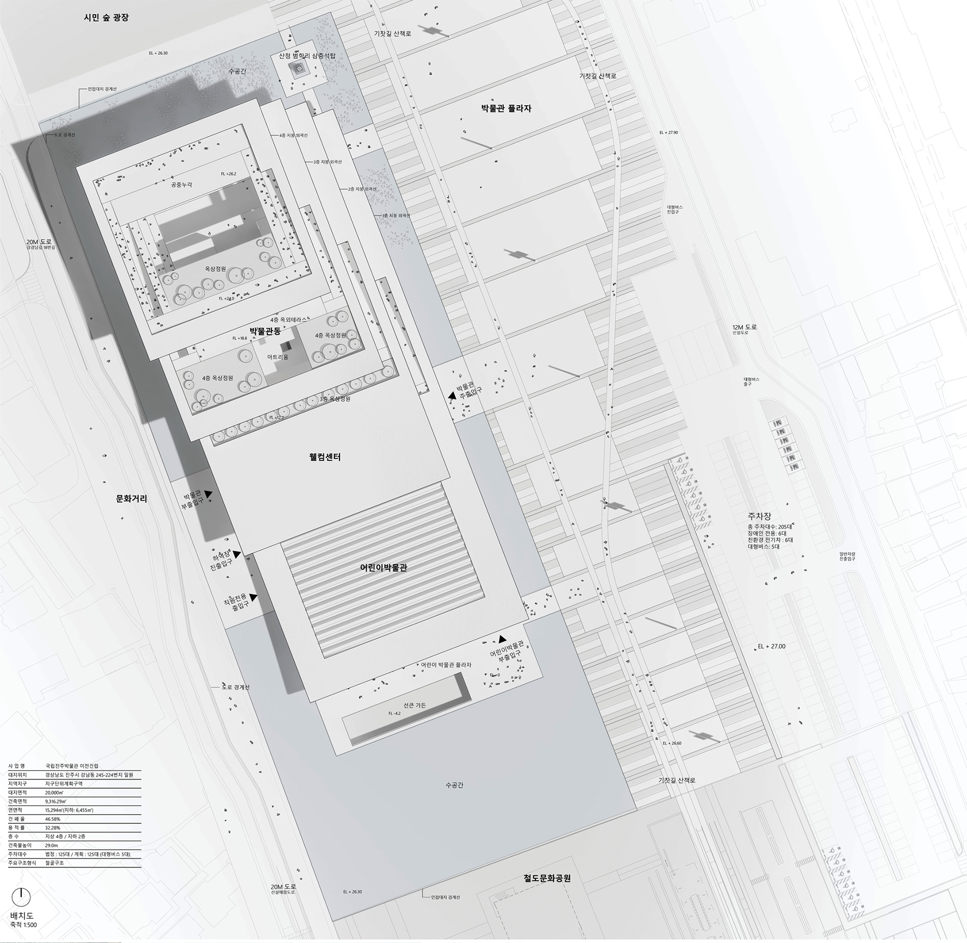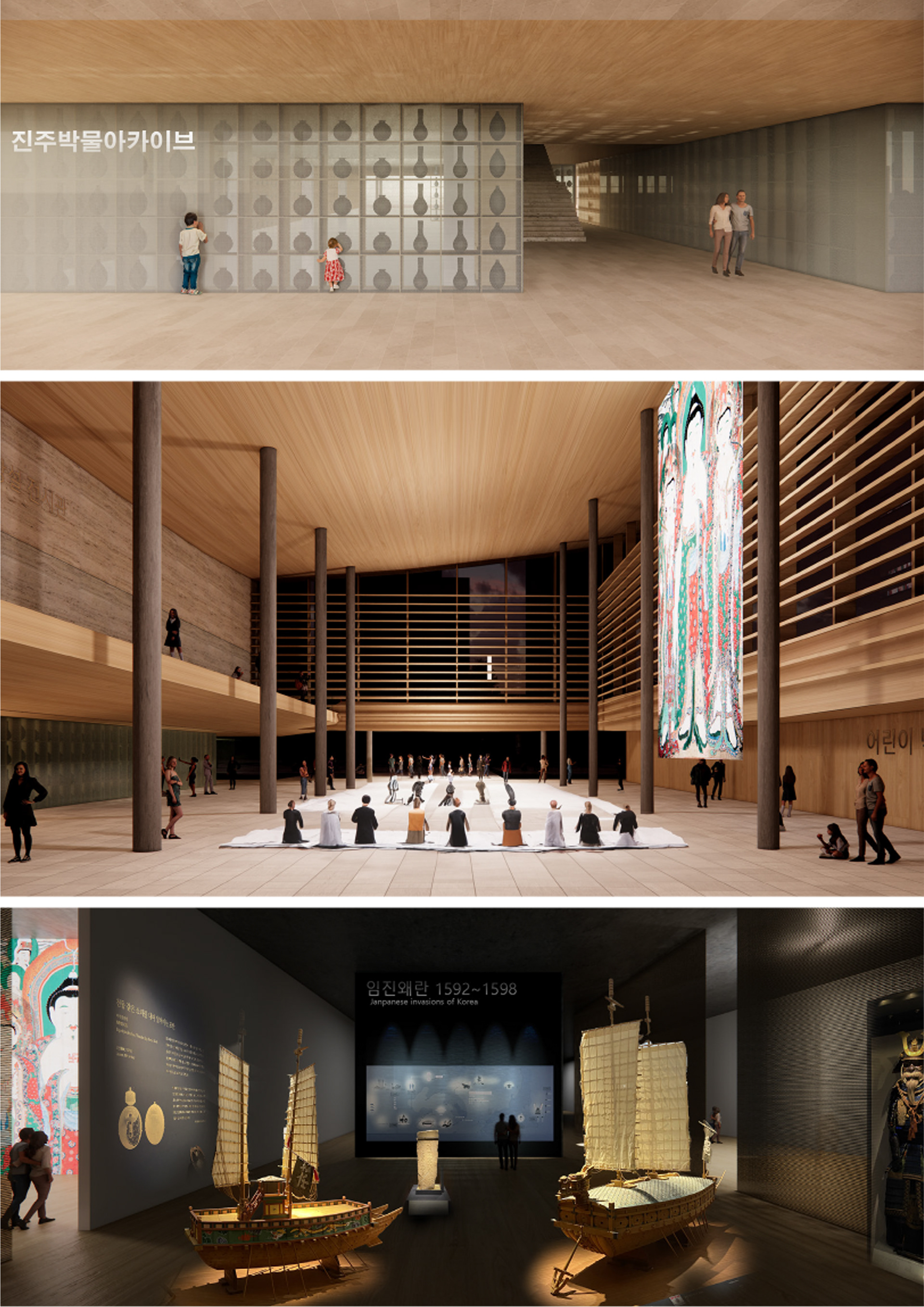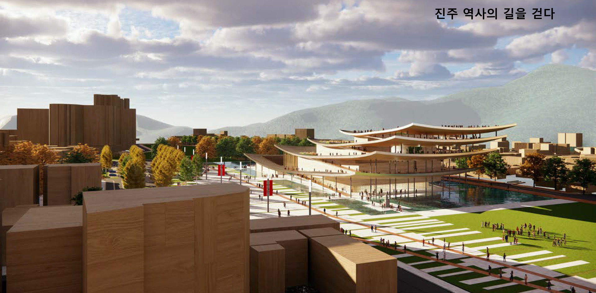 부지 남쪽에 조성중인 철도문화 공원에서부터 북측 과학관까지 인근에 개발중인 구도심 재생사업의 중심에 위치한 진주박물관은 남북방향의 거대한 보행축을 박물관으로 연장하는 동서방향의 연결점을 제공하여 방문객들이 쉽게 박물관으로 진입할 수 있도록 하며 이는 박물관이 도시 소통에 기여하는 계획이기도 하다. 지상층에는 어린이 박물관을 배치하여 인근 공원을 조망하는 가장 안전하고 쾌적한 환경을 제공함으로써 가장 활발한 프로그램인 어린이박물관이 전체 박물관의 활성화에 기여하도록 계획한다.