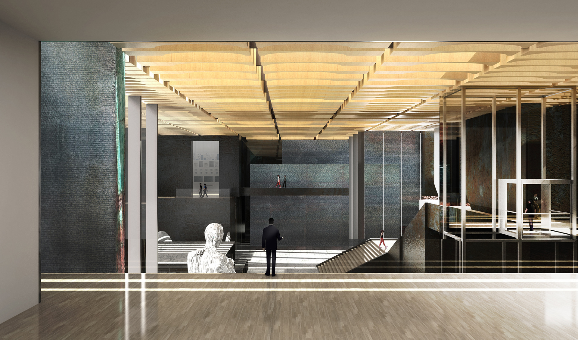 experience that is carried from the outdoor spaces. In particular, interior walls for the grand hall and the special exhibit hall