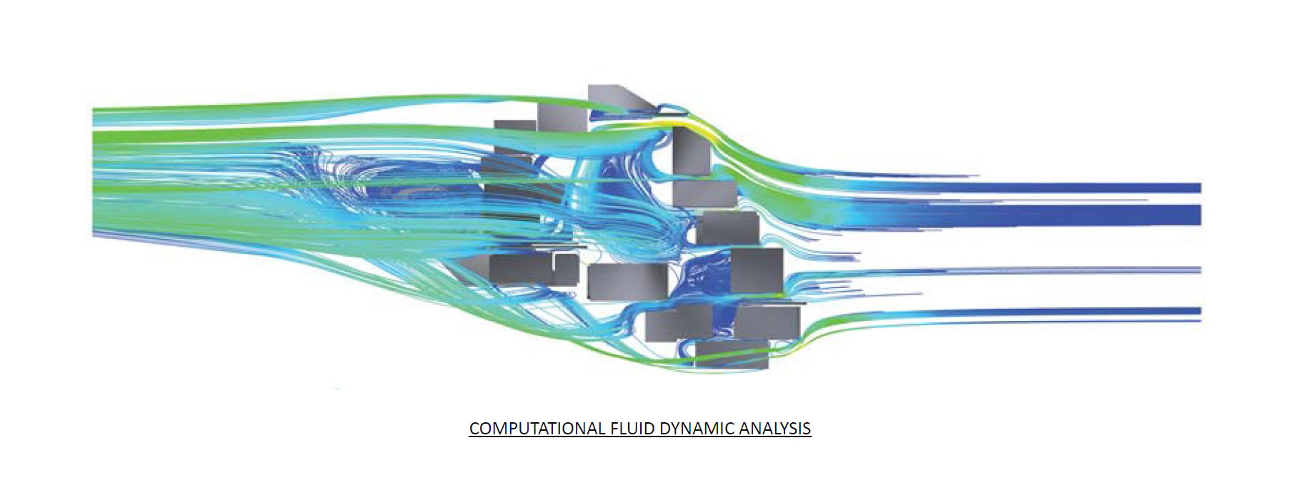 are in the same materials that are used for exterior claddings. Looking through the gaps among architectural masses, blurring